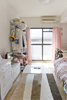 家具等に白とピンクだけを使ってカラーリングを統一しているため,女性らしさがよく現れている上清潔感漂うお部屋になっております。また,ラインが統一されているため見た目も美しく,背の低い家具が多いため圧迫感も感じません。