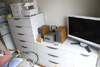 以前はベッドを利用していたのですが,布団にしたことで平時は広い空間を確保できるようになりました。パイプ棚や棚をうまく利用しているため,結構物が多い割にすっきりしたお部屋になっております。